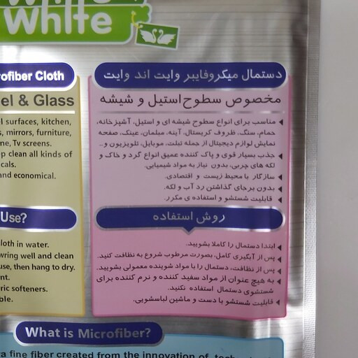 دستمال نظافت خانه و آشپزخانه میکروفایبر وایت اند وایت مدل شیشه و استیل